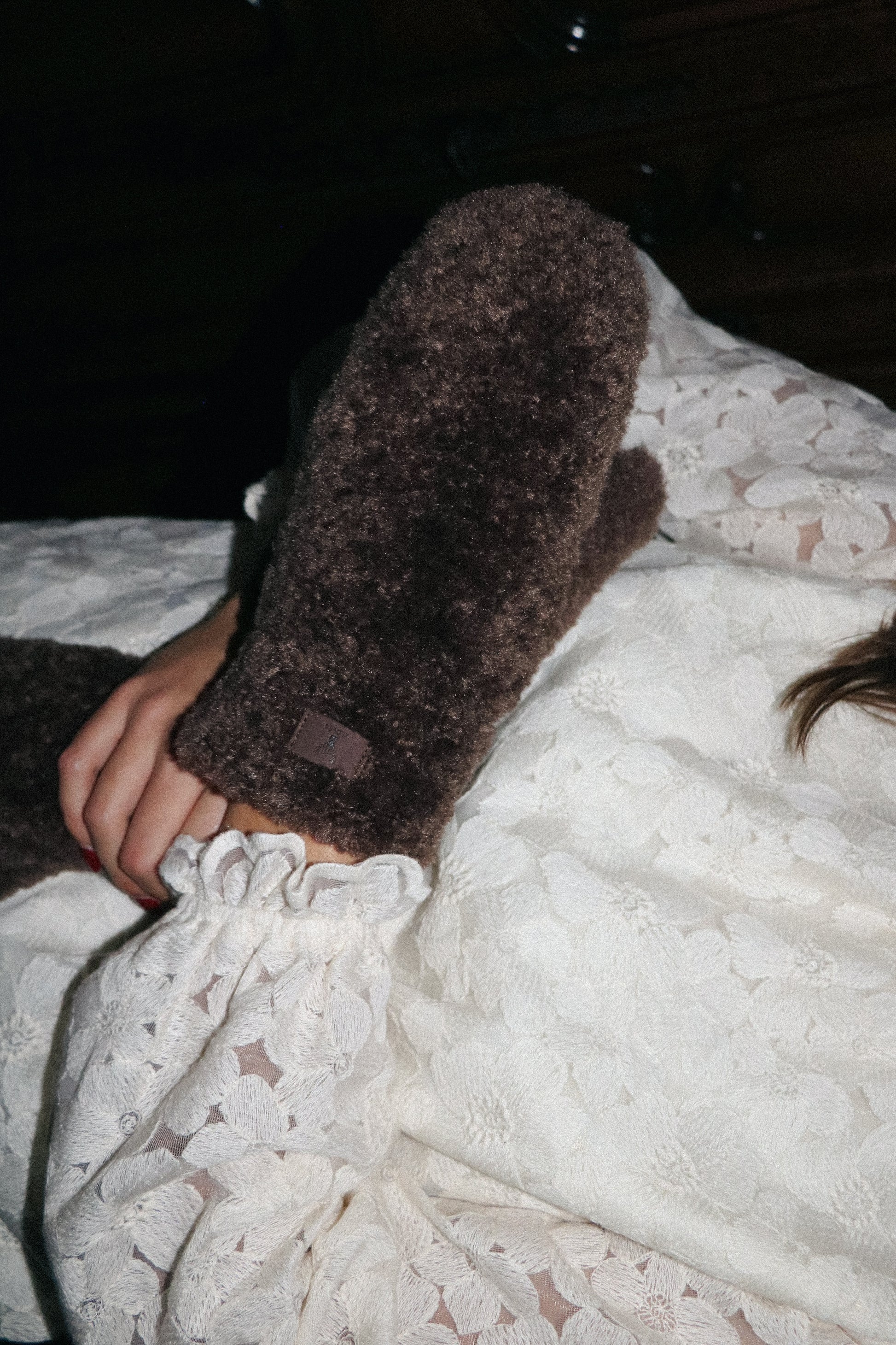 Mitaines en moumoute, doublée en polaire.