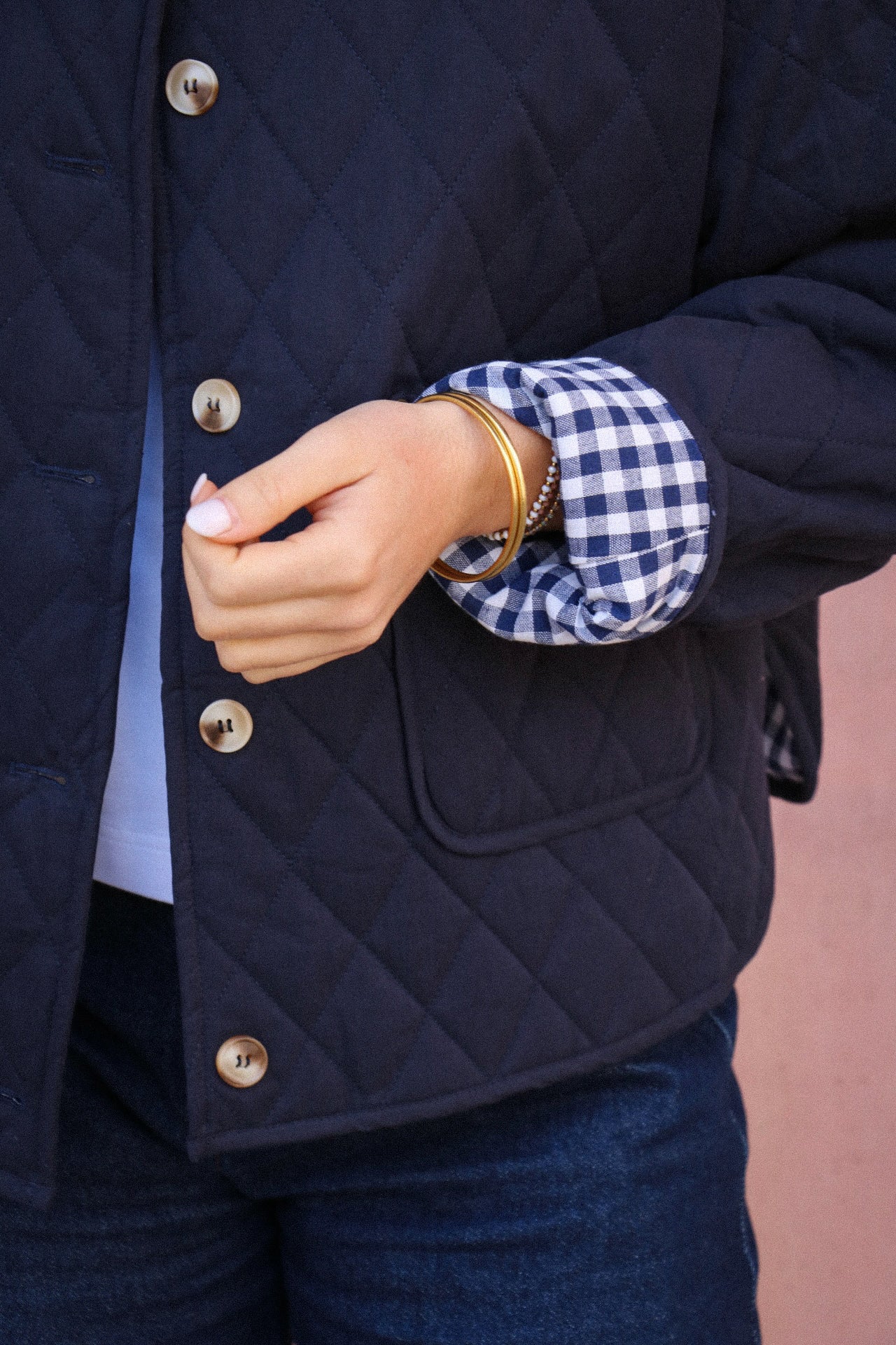 Veste matelassée au col rond, alliant confort et style. Ses revers à carreaux apportent une touche de contraste élégante, tandis que sa confection 100 % coton assure douceur et qualité. Dotée de deux poches à l’avant, c’est une pièce pratique et tendance pour compléter vos tenues.